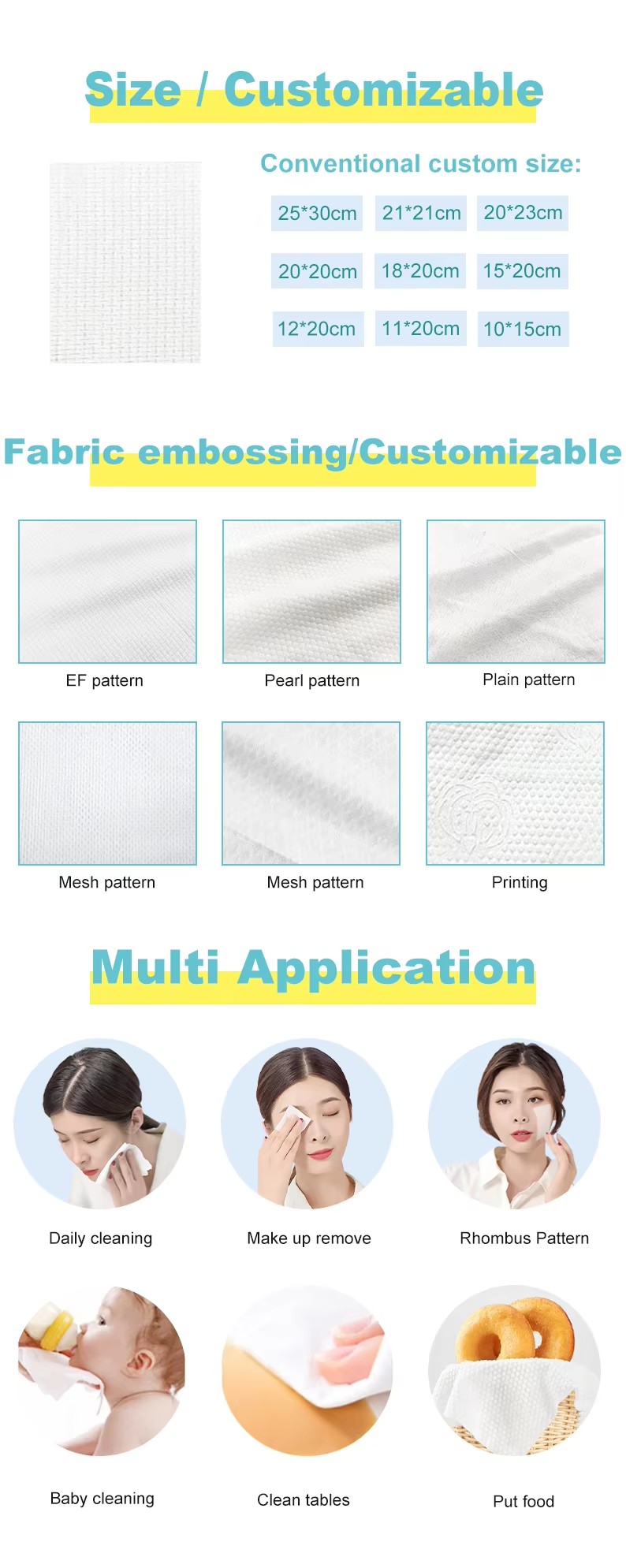 Cotton/Non-woven/Spunlace/Plant Fiber/100% viscose or Customizable